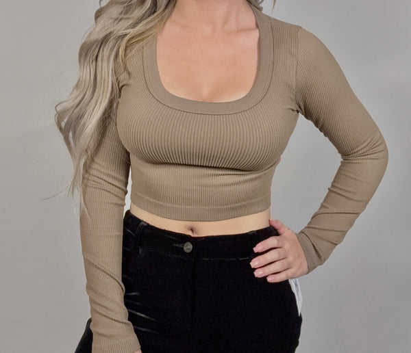 SCOOP NECK LONG SLEEVE SWEATER KNIT CROP TOP