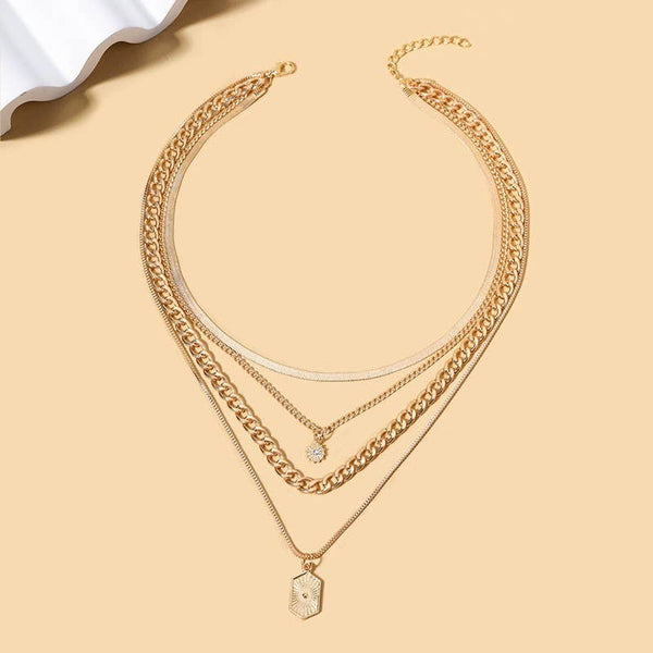 Double Charm on Multi-Layer Necklace, featuring sunblast round and sunblast rectangle charm on a layered, textured look. This piece blends boho-chic and faith-inspired elegance. Perfect for layering or wearing as a standout accessory. Product Details: length: 15", 17", 18" charm: 1" ext: 3" Ball Chain Ext clasp: Lobster Claw metal finish: Gold Plated product: Lead & Nickel Compliant durability: Double E-coating Layered Necklace | Gold Necklace | Gold | Rhinestones | Simple | Pendant | Charm | Cross | Stacking Necklaces | Mom | Mama | Gift | Necklace | Spring | Summer | Festival | Prom