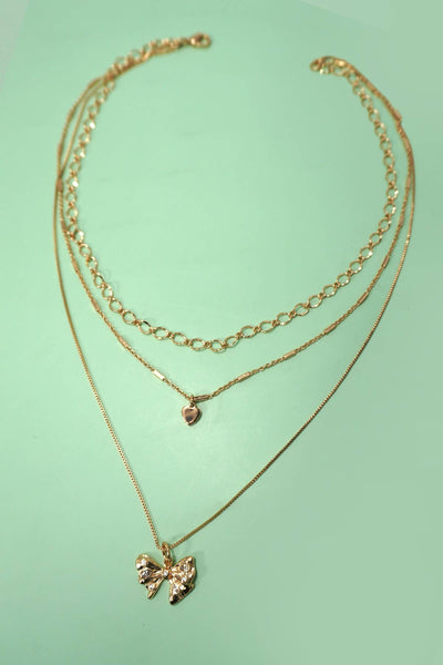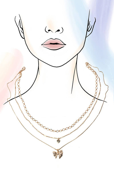 Multi-Layered Bow Heart Charm Necklace with playful bow and heart charms. Each charm adds a delicate touch, with bow, creating a romantic and sophisticated look. The layered design gives dimension,