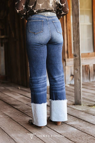 Denim wide-leg jeans with unfinished hem. 5-pocket jeans. Comfortable adjustable elastic waistband so there are no gaps in your waistline. Curved back yoke that makes the butt look better. Super soft and stretch fabric for the best comfort.
