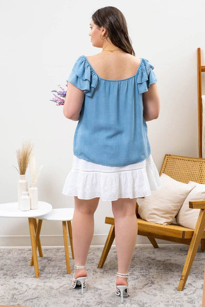Chambray Ruffle Sleeve Top